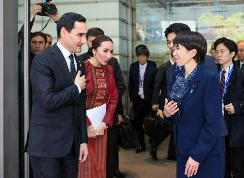 土库曼斯坦总统谢尔达尔·别尔德穆哈梅多夫强调,东京峰会是中亚与日本整个关系架构的转折点。他表示愿意使峰会定期化,并强调了经济合作的重要性,特别是在能源、交通和水务领域。土库曼斯坦正在积极与Itochu(伊藤忠商事)、Mitsubishi(三菱)、Kawasaki(川崎)、Sumitomo(住友)、Toyo(东洋)、Sojitz(双日)、Komatsu(小松)和Toyota(丰田)等公司合作实施大型工业和能源项目。别尔德穆哈梅多夫提出的优先事项包括经济的“绿色转型”、减少甲烷排放、发展氢能技术以及在地区建立气候技术中心。谈到跨境互联互通,别尔德穆哈梅多夫指出了连接土库曼斯坦与邻国的国际海上港口土库曼巴什港、新机场、铁路和高速公路的重要性。他建议设立“中亚-日本”青年论坛和“中亚与日本妇女对话”平台,并宣布2028年为联合国主持下的国际法年。