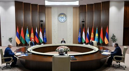 ℹ️ 集体安全条约组织领导人峰会及集安组织集体安全理事会会议于11月27日在比什凯克举行。与会总统包括:白俄罗斯-亚历山大·卢卡申科、哈萨克斯坦-卡瑟姆若马尔特·托卡耶夫、吉尔吉斯斯坦-萨德尔·扎帕罗夫、俄罗斯-弗拉基米尔·普京、塔吉克斯坦-埃莫马利·拉赫蒙。