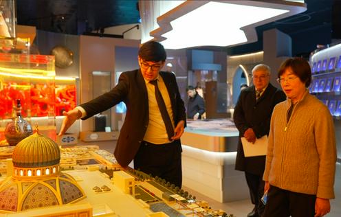 代表团首先参观了«名人堂»,这里通过建筑和艺术手法展现了中亚地区伟大思想家和政治家的形象。在展示前伊斯兰时期的展区,陈列着古代花剌子模、粟特和巴克特里亚的文化遗产、《阿维斯塔》的传承以及考古发现。